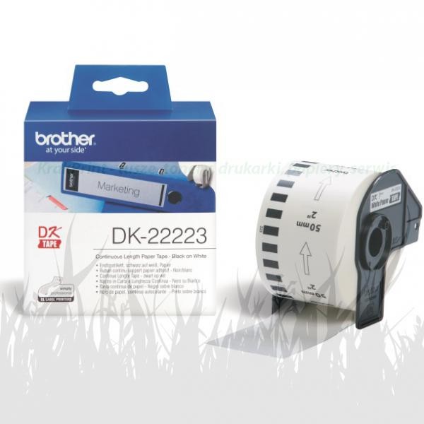 Oryginalna taśma Brother DK 22223 50mm x 30.48m biała/czarny nadruk